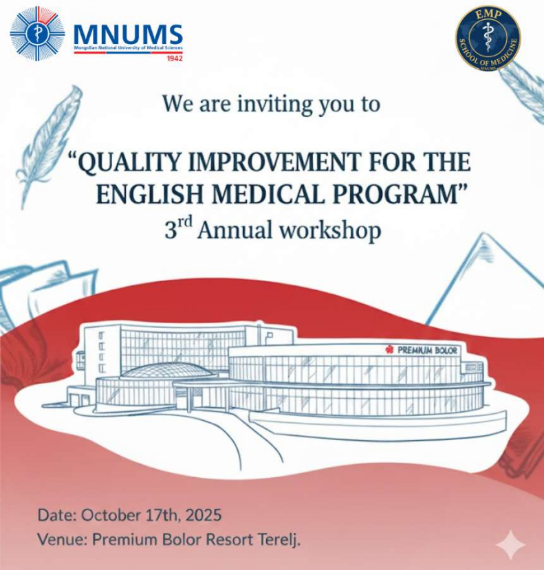 몽골국립의대와 국제교육교류협회는 2025년 10월 17일에 몽골국립의대 영어트랙(MNUMS English Medical Program)의 현재 상황을 진단하고 질적인 발전을 도모하기 위한 워크샵 행사를 실시하였습니다.